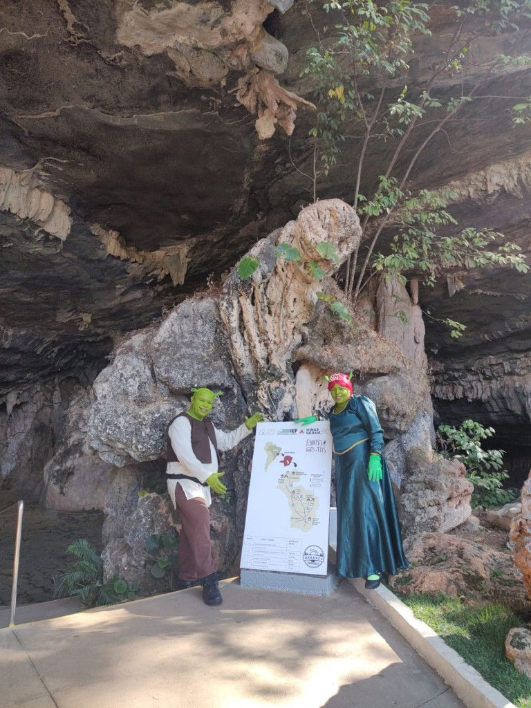 Na Gruta do Maquiné teve passeio com direito a companhia do Shrek e da Fiona.